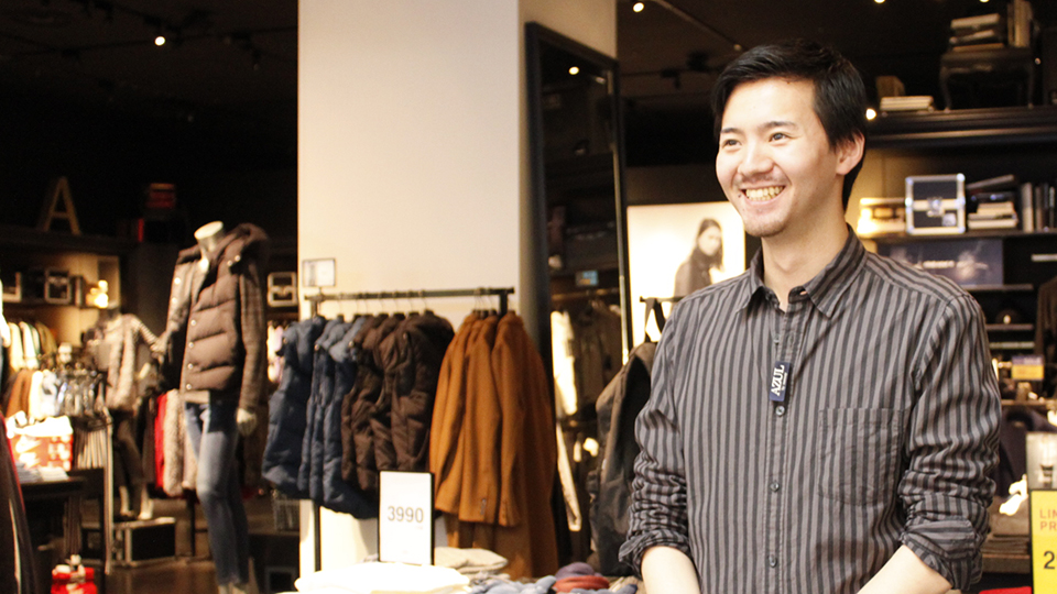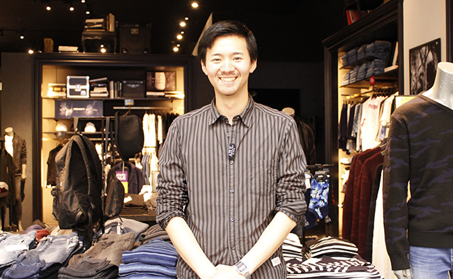 イオンモール木曽川店で店舗の責任者として、店舗の運営全般を行なっています。在庫の管理やシフトの作成など裏方・店長だけの仕事もありますが、アパレルスタッフであることに変わりは無いので、売場に立ち、接客や売場の編集などを行う事がメインの仕事です。 店長という立場になっても、やはりお客様からの言葉はやりがいになります。 お声掛けをして、お買い上げ頂いた商品と自分自身の対応に満足して頂ける「ありがとう」という言葉は何ものにも代え難いものがあります。「お兄さんのお陰で・・・」など対応自体に感謝のお言葉を頂いた時は、店長になった今でも何よりもやりがいとなる事です。