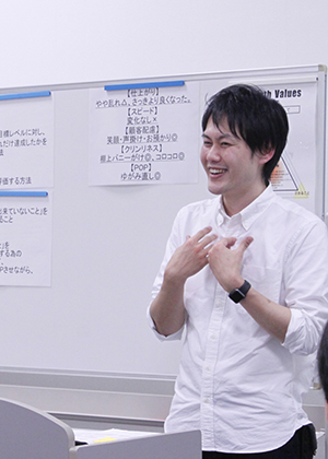 日々心がけていることは、常に『笑顔』で、『ポジティブシンキング』で、『個性』を大切に人と接することです。(スタッフだけでなく、上司やお客様、家族、ご近所の方含め、公私に接する全ての人です。)接客においては、『ご満足でなく、感動させる!』です。取り組んでいることは、「教」と「育」が付く言葉の仕事は、「自分がやる!」ということです。背中を見せるべきか?体感して学んでもらうべきか?の見極めを常に課題として取り組んでいます。今後チャレンジしていくことは、「すべての職位の研修」です。今はスタッフ、新入社員がメインですが、副店長候補研修や、店長会議での店長研修で基盤作りをしています。